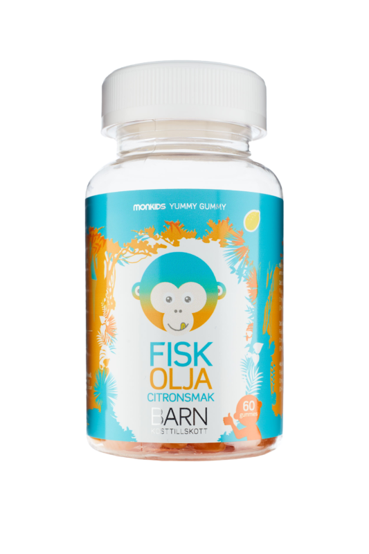 Om ditt barn inte äter fisk kan du kombinera multivitaminen med Monkids Fiskolja. Gummyn ger ditt barn ett jämnt intag av viktiga omega-3-fettsyror.